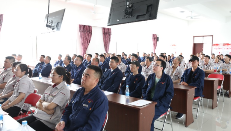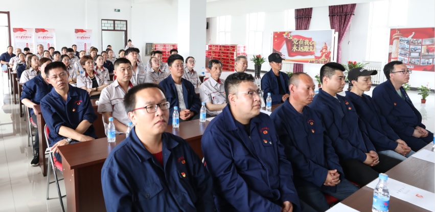 隨后,集團黨委書記洪海發表了題為《感黨恩、聽黨話、跟黨走》的講話。在講話中,他首先表達了身為中華兒女、身為一名共產黨員的驕傲與自豪。他指出,正是在黨中央的正確領導、無數黨員的無私奉獻、接續奮斗中,我們祖國才實現了從站起來、富起來到強起來的偉大變革,國家繁榮昌盛,百姓安居樂業。作為一個民族企業,遼寧紫竹集團始終以“自強不息 產業報國”作為初心使命,經過十余年的發展,已經從最初幾十人的鎮辦小廠,發展為擁有幾千名員工的全國民營企業制造業500強的集團公司。如今,集團黨委已成立了8個黨支部,未來將不斷豐富黨員的組織生活,用高質量黨建工作推動集團高質量發展,讓每位員工心中有信仰、眼中有希望、臉上有笑容、身上有健康!